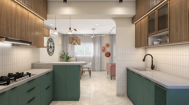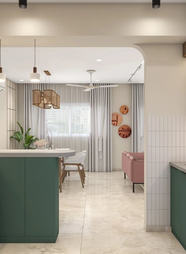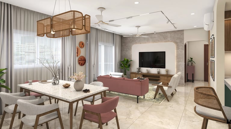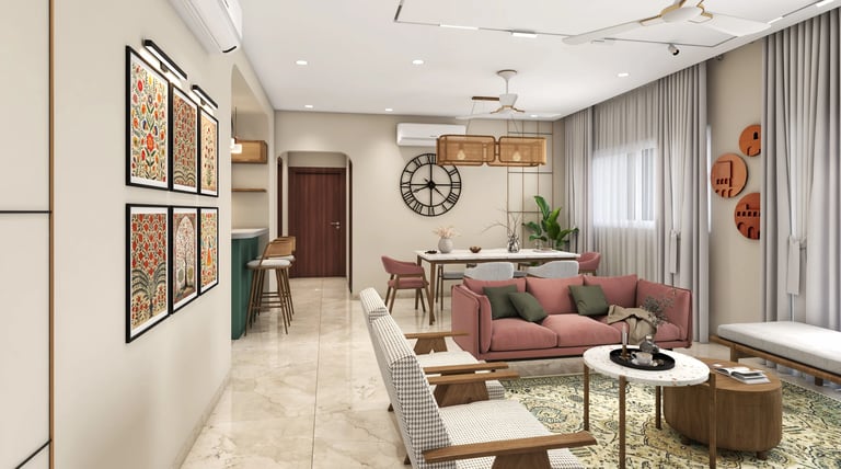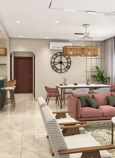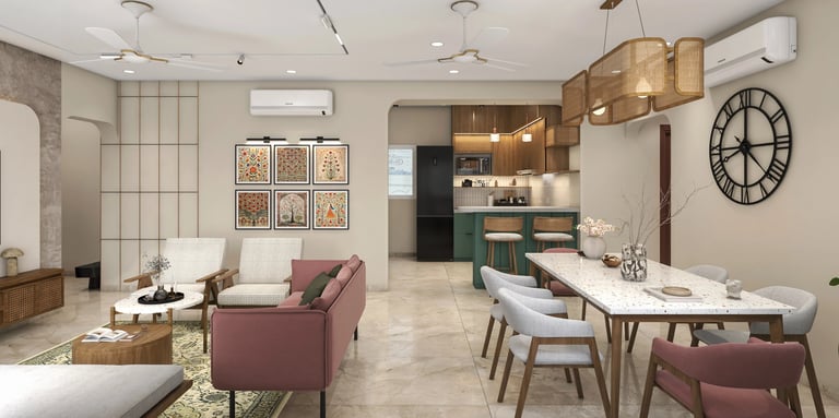 The 3BHK apartment block, located in a prime area of Lucknow, offers a harmonious blend of Scandinavian and Indian design elements within its approximately 1200 sq ft carpet area.